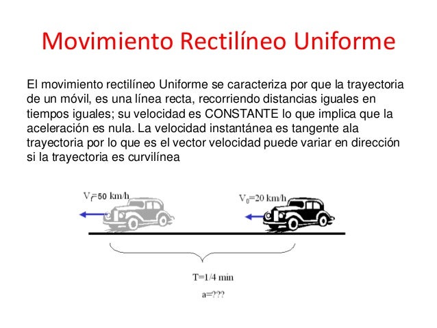 El movimiento rectilíneo uniforme (m.r.u.), es aquel con velocidad constante y cuya trayectoria es una línea recta. Un ejemplo claro son las puertas correderas de un ascensor, generalmente se abren y cierran en línea recta y siempre a la misma velocidad.